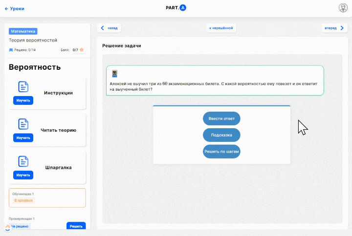 Круто, в школе мы бы потратили несколько уроков на изучение теории вероятности, а здесь так быстро получилось разобраться! Бот понятно объясняет.